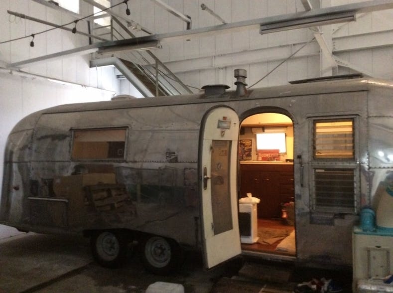 現在所有しているエアストリーム(写真上・現状は内装がありません)