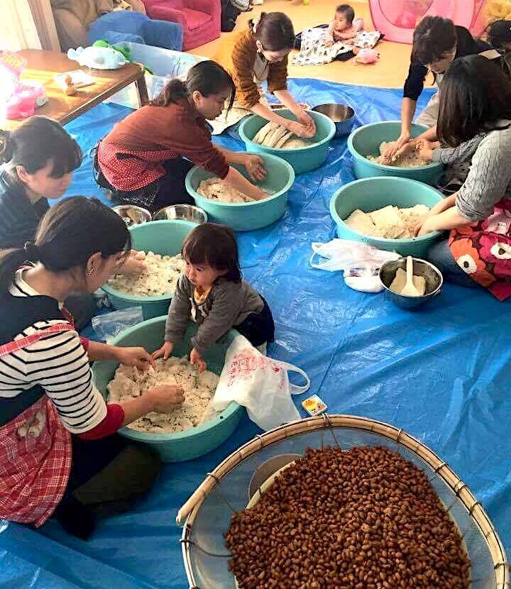 (子供と一緒に楽しむお味噌作りの様子)