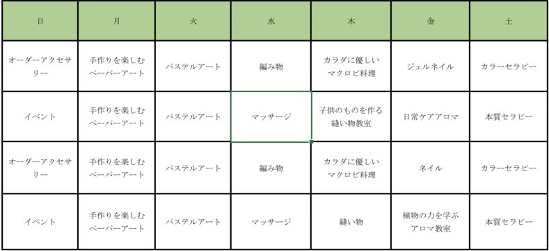 現在、シェアオーナーにはインナービューティープランナーやアロマセラピスト、ペーパーアート講師、カラーセラピスト、アクセサリー作家やハンドメイド作家などが在籍しており、お互い刺激し合いながらこの場所で頑張りたい!と準備しています。