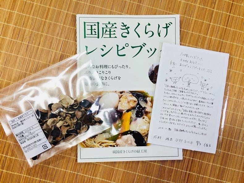 「クラウドファンディング、有名店でも使われる、国内に3%だけの「純国産きくらげ」を全国に広めたい!プロジェクトのリターンが届きました!