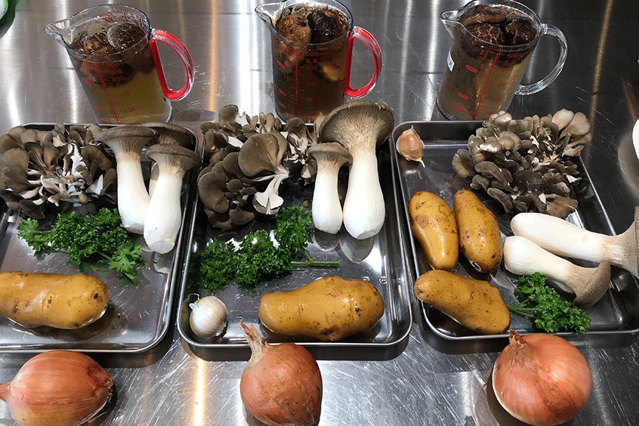 先日10月16日、鳥取最大の子育て世代のママコミュニティTottori Mama’s さん主催のスープ教室を開催させていただきました。今回もBabyちゃんをおんぶして参加してくださったママさんたちが来てくださって、とても嬉しいお教室になりました。この日は、ひとつのレシピで二つのスープを! 今回食材をご提供いただいたのですが、これがまたすっごく美味しかった!やはり食材命!と改めて思いました。 きのこ類をご提供いただいたのは、日本きのこセンターさん。写真でも伝わるかと思いますが、鳥取県産原木きのこの、この立派なこと!ぱんとして密度が高く肉厚で香りの良いきのこたちでした。そして干し椎茸も!今回はこの干ししいたけと昆布を水に浸けておいしいだしを取りました。 そして野菜をご提供いただいたのは、鳥取ずいせん生産組合さん。有機栽培の野菜を一生懸命作られている農家さんたちが作ってくださった玉ねぎ、じゃがいも、にんにく。食べたらその美味しさに驚きますよ、本当に!今年の夏の猛暑や、立て続けに来た台風、大雨…ご苦労を思うと涙が出そうです。この農家さんを支えるのは私たち消費者だとつくづく思いました。 さて、きのこと有機野菜の話を始めるとながーくなるのでそれはまた追い追い。この日作ったスープは1種類だけど2種類。どゆコト!?以下レシピです。 ………………………………………………… 秋のきのことじゃがいものスープ 材料(4人分) 〔だし汁〕 干し椎茸…2枚(45g) だし昆布…10cm程度 水…500cc まいたけ…120g(1パック) エリンギ…100g(2〜3本) じゃがいも…200g(1個) 玉ねぎ…100g(1/3個) にんにく…4g(1片) オリーブオイル…大さじ1 牛乳…250cc 塩…小さじ1/2強 こしょう…少々 パセリ…少々 作り方 *下準備:ビンに水と干し椎茸とだし昆布を入れて冷蔵庫で一晩置き、だしを作る。 1:にんにくはみじん切り、きのこ類は石付きを取って食べやすい大きさにする。玉ねぎは1cm角、じゃがいもは1.5cm角に切り水にさらしておく。 2:だしのビンから干ししいたけを取り出し、石付きを取って5mm角に切る。 3:鍋にオリーブオイルとにんにくを入れて弱火で炒め、香りが立ってきたら中火で玉ねぎ、じゃがいもの順に炒め、きのこを入れてざっくり混ぜる。 4:だし汁と昆布を入れてふたをし、沸騰し始めたら昆布を取り出し弱火で10分煮る。 《そのまま仕上げる場合》 5:牛乳を入れ、塩、こしょうで味をととのえる。沸騰する直前で火を止める。 《ポタージュにする場合》 5:一度火を止め、 鍋にハンドミキサーを入れてスープをなめらかにする。 6:牛乳を入れて中火にかけ、塩、こしょうで味をととのえる。 ※どちらもお好みでパセリのみじん切りをトッピングする。 ………………………………………………… スープの写真はキッチンをお借りした山陰酸素工業鳥取ショールームさんが撮ってくださいました。すてきーありがとうございました!(TOPの写真は私が試作時に撮ったもの。ポタージュは半分具を残してミキサーにかけました!) そして取材に来てくださった日本海ケーブルTVさん(女性チーム!)、ありがとうございました! こうして皆さんに支えられてスープ教室をやらせていただいております。なんと幸せなことでしょう。どうしたらご恩返しができるかと思うと、やっぱり、化学調味料を使わないスープ作りを一人でも二人でも覚えていただいて、子供たちが元気に育ってくれることを願ってやっていくしかないなと思います。 来月のスープ教室は11月20日、同じくTottori Mama’s さん主催、山陰酸素工業鳥取ショールームさんにて開催します。またご報告します〜!