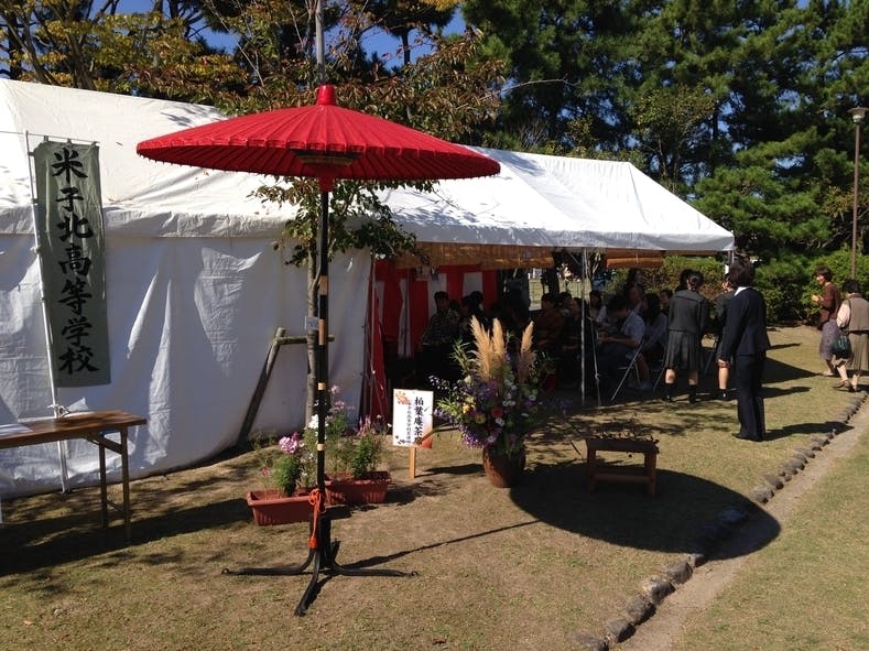 以前は米子市が主催していましたが、現在は民間の高校、大学の茶道部や公民館のお茶教室、琴の教室などが集まり自前の資金と協賛金を元に運営させていただいています。