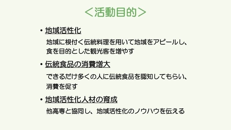 また、全国各地の高専の技術力を活用して、各地の伝統食品を盛り上げていきたいです。