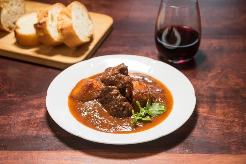 煮込みの赤ワインには、鳥取県産の「北条ワイン」を使用。水はけがよく葡萄の栽培に適した北栄町の土地で栽培されています。他では味わえない個性豊かな風味で、料理が一段と深みのある味わいに仕上がりました。