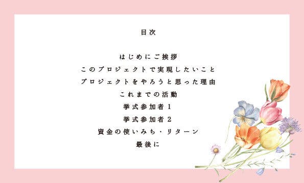 支援して頂いたお金で結婚式を彩るお花を購入します。