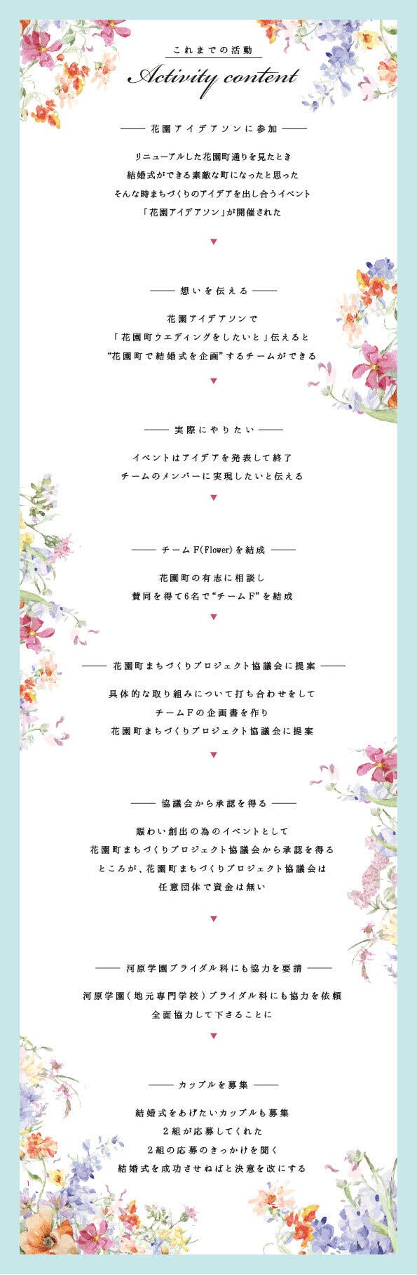 また、ぜひ結婚式をやりたいという2組の素敵な新郎新婦、河原学園の学生さん、花園町通りの活性化の為にもぜひ成功させたいと思います!