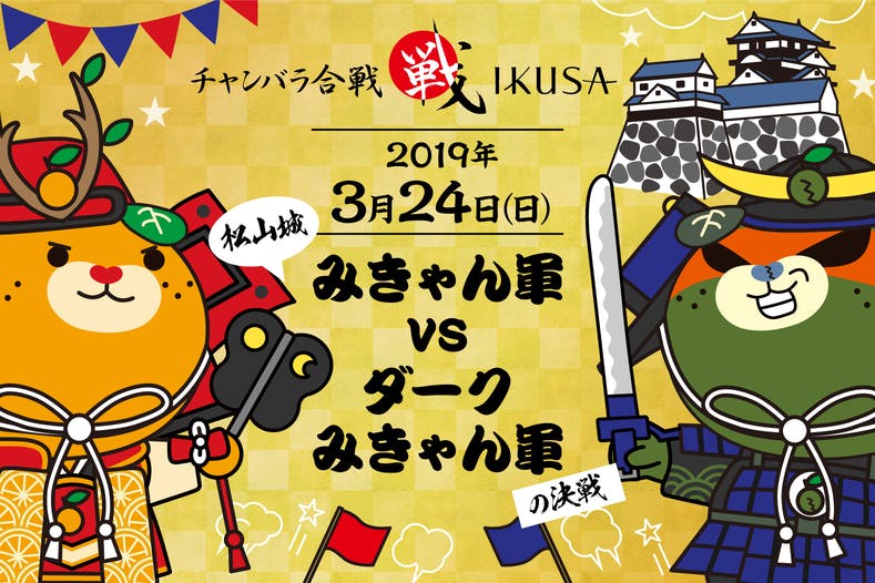 そして、合戦イベントをやるなら、愛媛県を代表するゆるキャラ「みきゃん」と「ダークみきゃん」双方に分れての決戦をおこなって愛媛をアピールして盛り上げよう!と考えました。