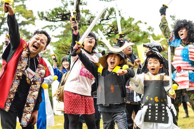 子どもから大人まで楽しめる「100 vs 100のチャンバラ合戦」を松山城のふもとで開催したい!!