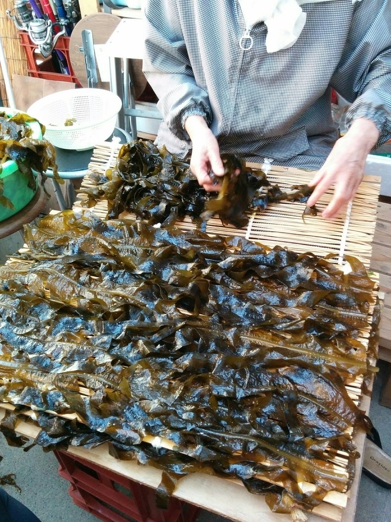 ① 世界最大の大きさの板ワカメ作り