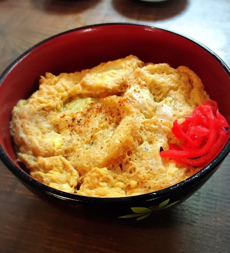 宮城県登米市名産の油麩を卵でとじた、油麩のうま味をぎゅっと閉じ込めてご飯の上に乗せた油麩丼。