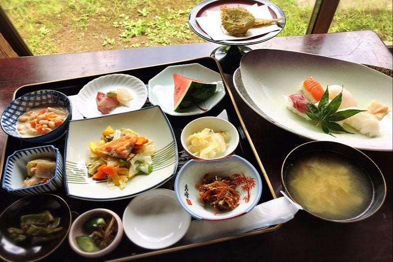 器は150年以上前の漆器を中心に御膳も当時の物を使用し、料理は全8品を毎日日替わりでお出しします。