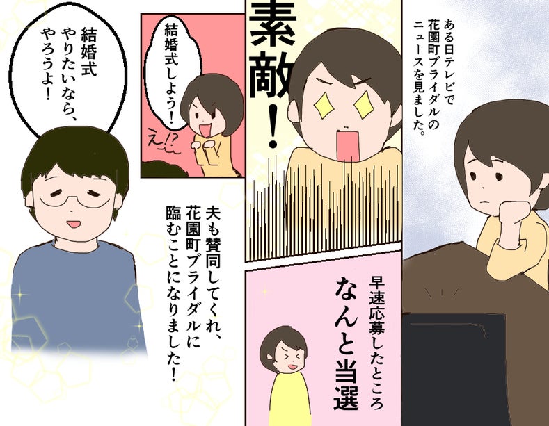 挙式参加者1(N夫婦の馴れ初めと花園町ブライダル応募に至るまで)
