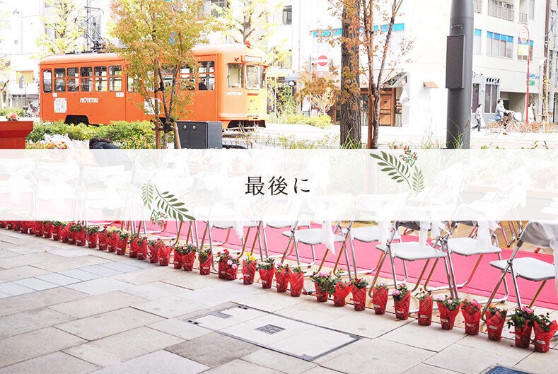 昨年は松山らしいオレンジの路面電車や季節を彩る草花を背景に、松山の俳人正岡子規に見守られながら、花園町ブライダルを実現させることができました。