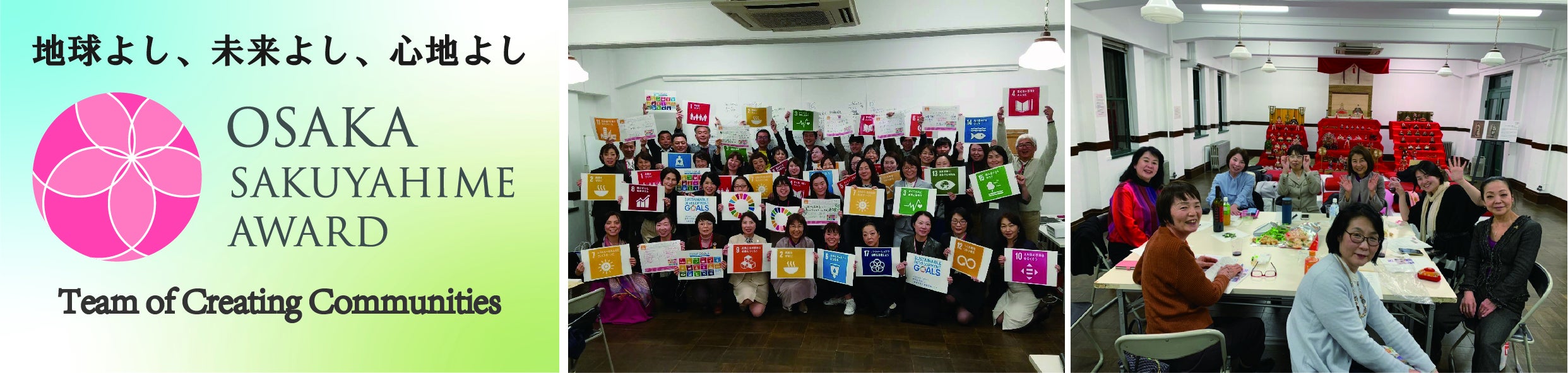 大阪サクヤヒメSDGs研究会 まちづくり部会(ToCC:トゥック) は、大阪商工会議所が主催する大阪サクヤヒメ表彰を受賞した働く女性有志がメンバーです。「地球よし、未来よし、心地よし」を合言葉にSDGsに役立つことを実践します。ToCCというチーム名称は、Team of Creating Communities の略で、メンバーのコミュニティネットワークを活かし、ひとりひとりのアイデアを繋げることで持続可能な「まちづくり」を進めていくことを表現しています。