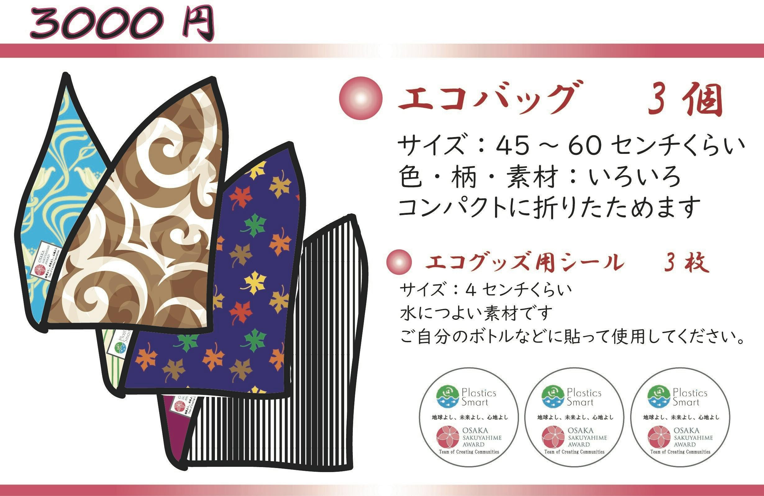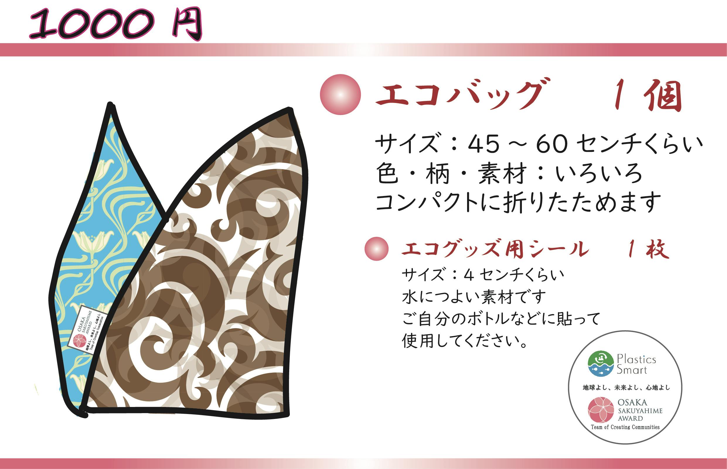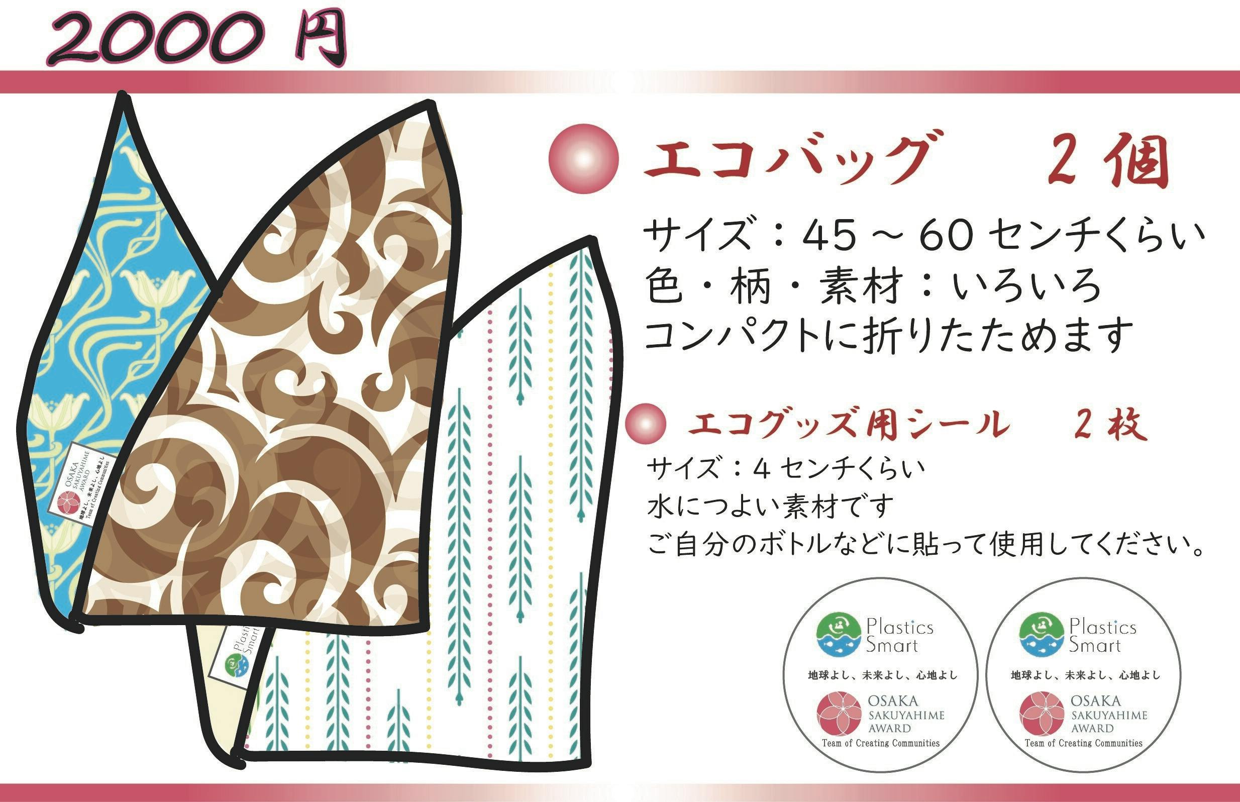 リターンは、お礼メッセージ、福祉作業所で縫製したエコバッグ、エコグッズ用シールです。
