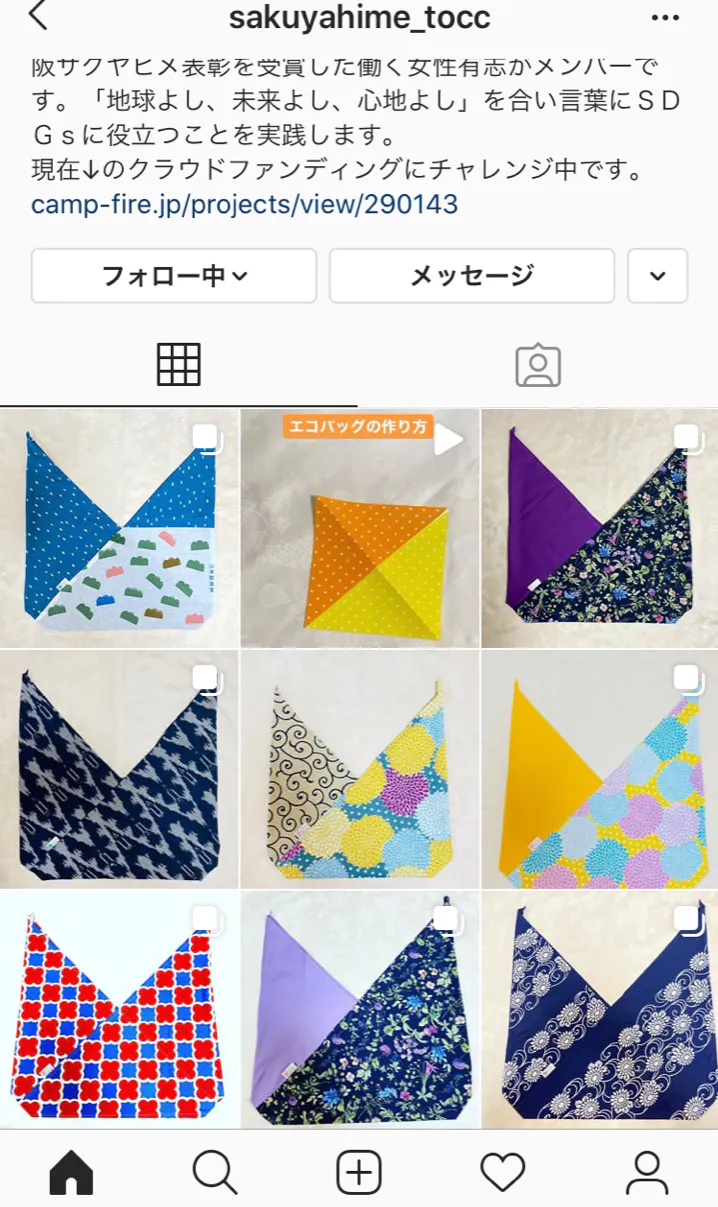 2020/07/01 19:00公開から7日が経ちました。プロジェクトに参加いただきました皆様、本当にありがとうございます。Instagram に sakuyahime_toccを作成し、活動の状況を見ていただけるようにしましたので、是非ご覧ください。エコバッグの製作状況や福祉作業所の様子など、今後掲載していく予定です。楽しみにしていてくださいね!https://instagram.com/sakuyahime_tocc?igshid=o5w90ghwdmzz もっと見る