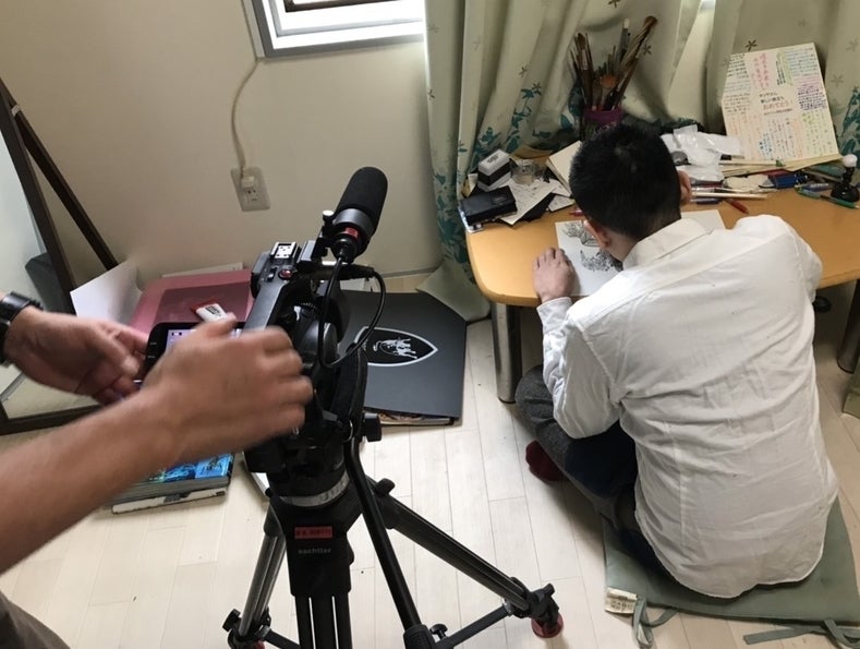 NHKさんにお越しいただき「うつ病でも絵を描くことで自分の尊厳を保ちながら、売れた絵のお金はお母さんに仕送りしている作家がいる」と取材していただきました。