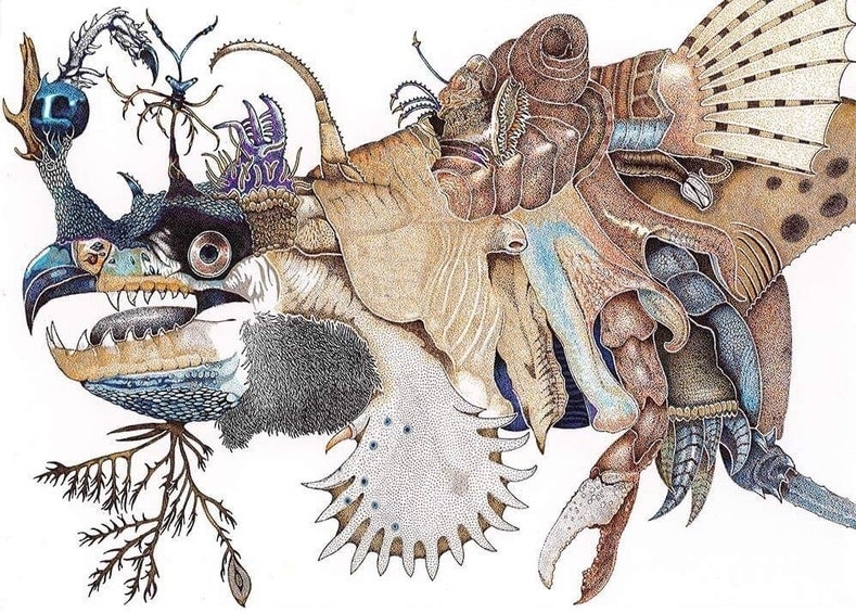 【深海の暗殺者】点描画(画用紙・ミリペンカラー)(26cm×36cm)