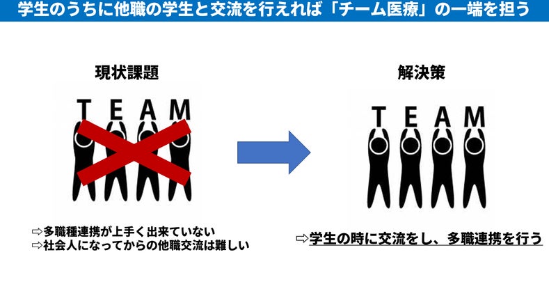 「それなら、学生のうちから医療系学生のを集めて他職の子と交流する機会を設ければ良い!」
