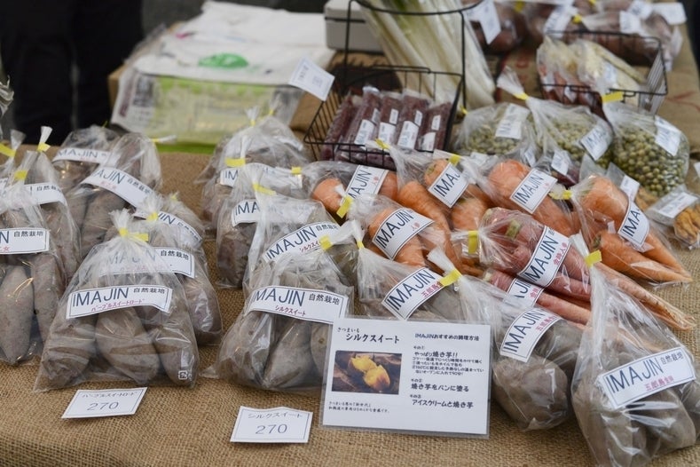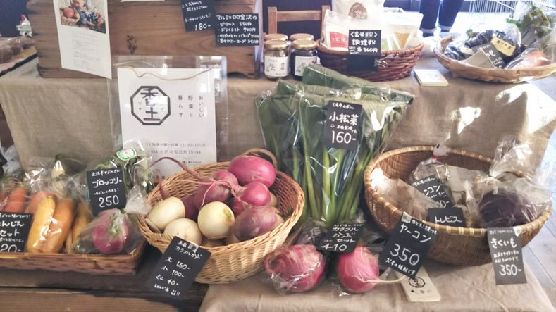 . 毎週水曜日は、ファーマーズマーケット日です。 朝どれお野菜を農家さんが直接売りにきます .今日もいろいろお野菜そろってます!カラフル人参、ねぎ、安納芋、じゃがいも各種、水菜、白菜、ブロッコリー、かぶ、しいたけ..などなど。..そして今日は新しい農家さんにも来ていただきました。羽咋市で自然栽培をされている「IMAJINイマジン」の松本ご夫妻 食べてくれる人をイメージ(イマジン)しながらお野菜を育てたい。そんな思いからこだわり野菜に励んでみえます。香土でも明日からイマジンさんのお野菜を販売してます。ぜひお試しください.