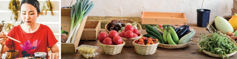 地物野菜を使った健康的な和食は、