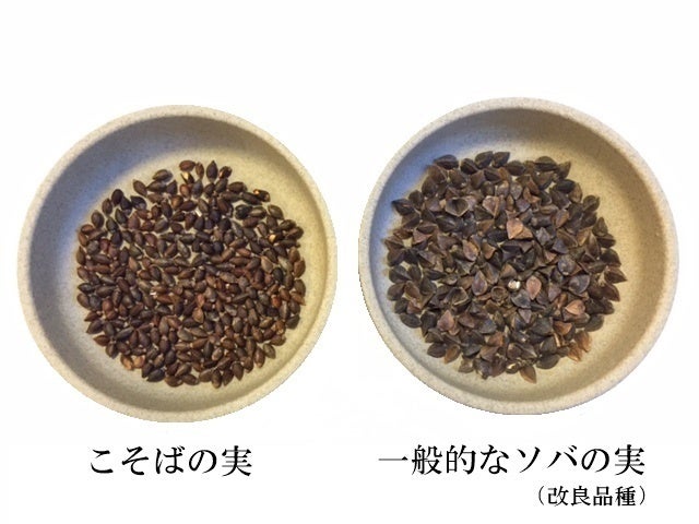 実が一般的な品種改良されたソバに比べると小粒なのが特徴です。小粒なソバから「こそば」と呼ばれるようになりました。