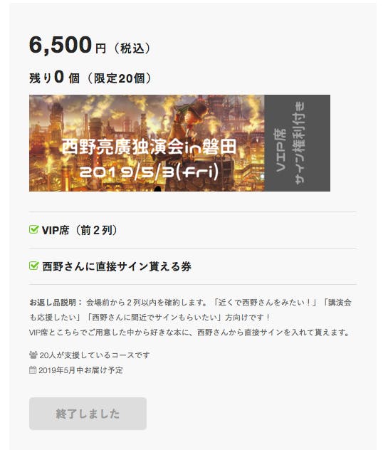 VIP席、懇親会付きチケット、企業団体様向けチケットは、このクラウドファンディングのみのリターンとなっております!