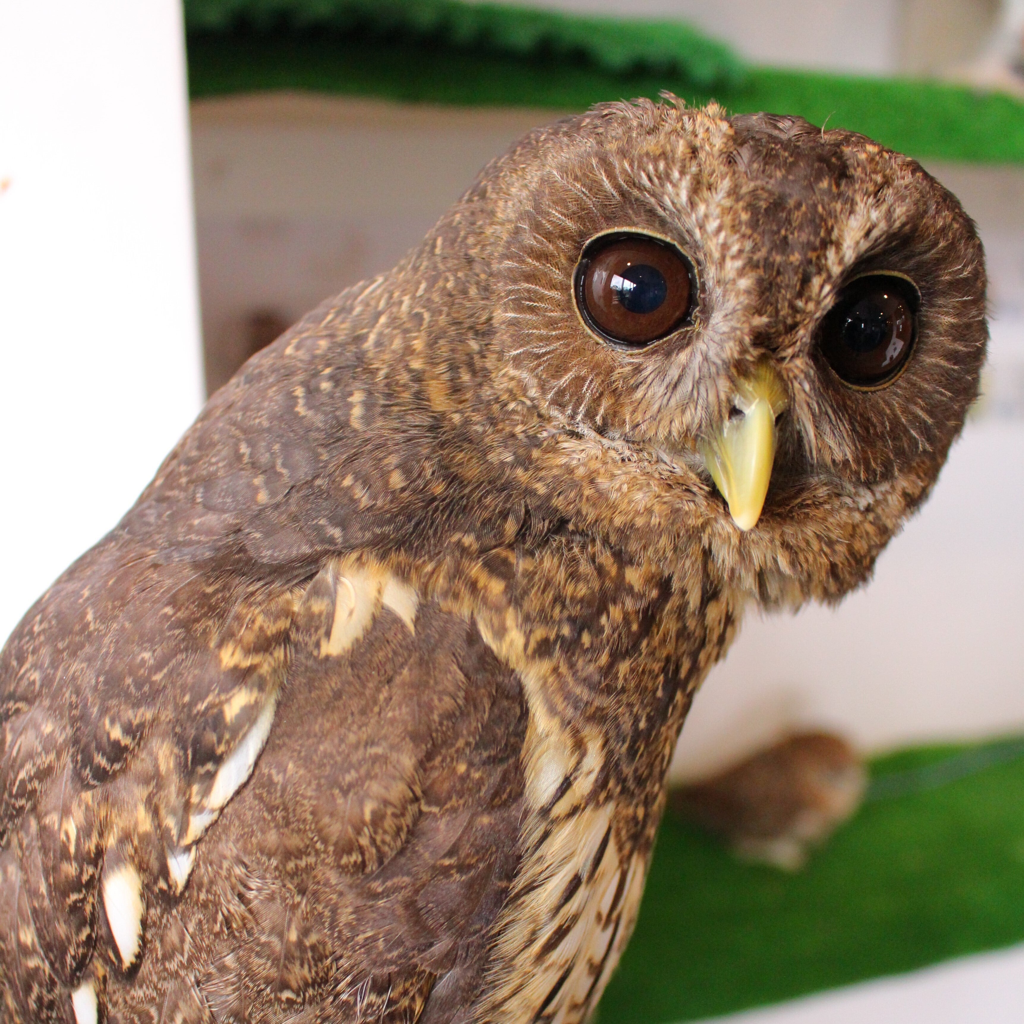 モリフクロウとウラルアウルのミックスでハイブリッドと呼ばれます、3/22生まれの4歳です。