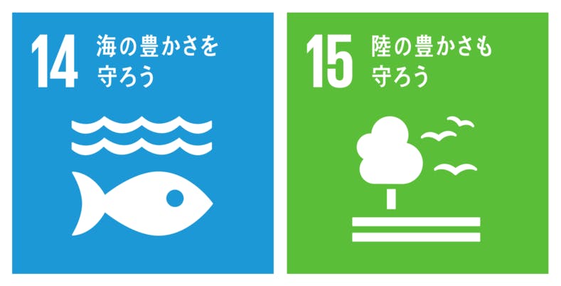 私たちは、SDGs「14:海の豊かさを守ろう」「15:陸の豊かさも守ろう」を目標に、世界的な環境問題に貢献することを宣言します。