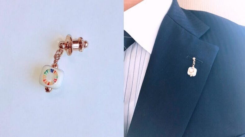 首元にきらりと光るSDGsマークはお洒落でかつ、発信度も高いです。