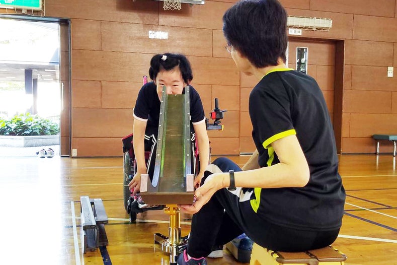 恵子はBC3というクラスでアシスタントによるサポートにてランプ(勾配具)を使用して競技をします。