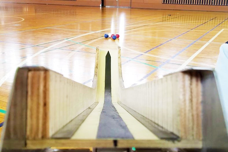そして、1ミリの差で勝敗が決まることもあるボッチャでは、ランプ(勾配具)の果たす役割も非常に大きいのですが、特殊な道具のため高額です。