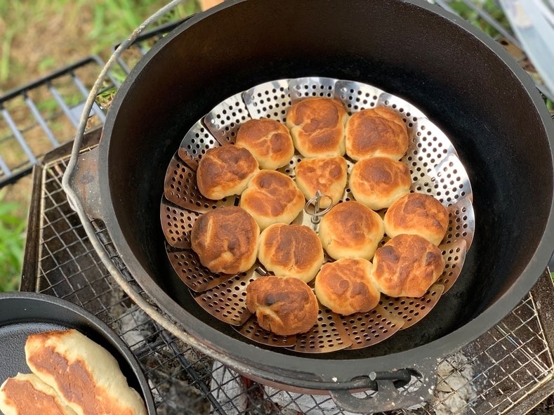 海辺にテントを張り、ダッチオーブンを使った料理づくしでした。