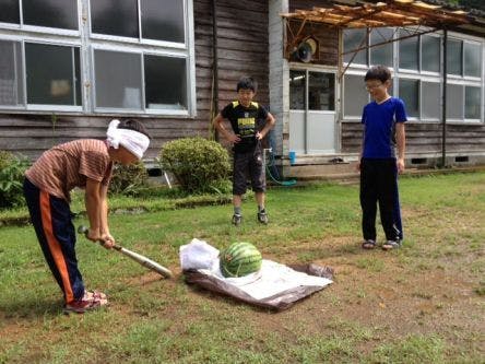 2013/08/07 10:47スイカの種飛ばし 水俣の大川地区での宿泊の1コマです。 スイカ割りに水遊びに...夏ですね! 大川地区のみなさんにBBQを開いて頂きました! ※おまけ 兄「一緒にトイレについて来て下さい!」弟「えーー」 もっと見る