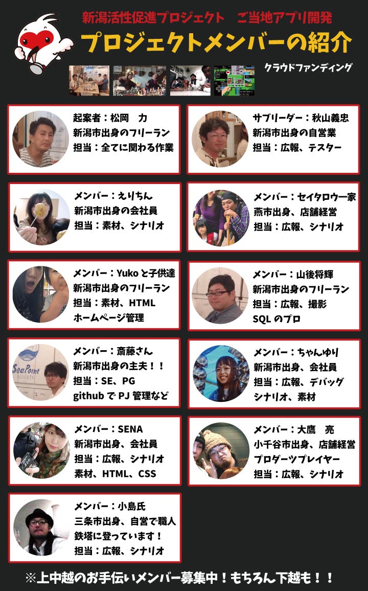 ■メンバー:小嶋 献(三条市出身の自営業で飲食店オーナー。情報作成、テスター)