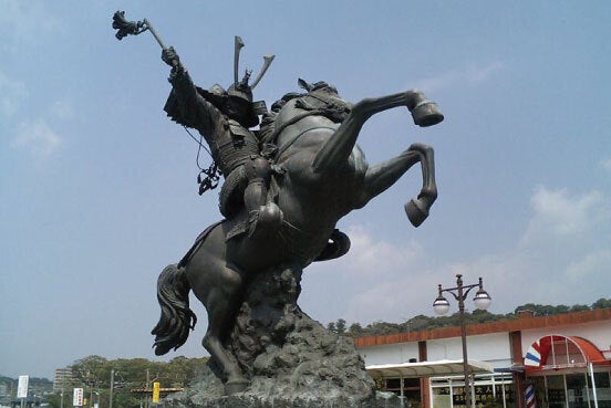 ▲伊集院駅前に位置する島津義弘公の銅像。
