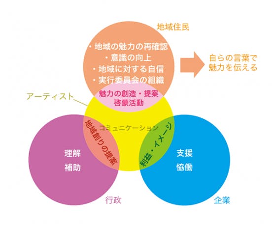 アーティストは、以下の図のように、吹上町の方々と様々な関わり方をします。
