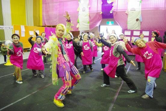 ▲アーティストと一緒にポーズをとってくれる吹上のおばちゃん達