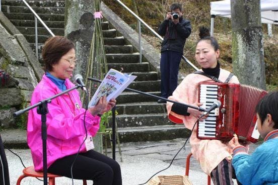 ▲アコーディオンの伴奏付き読み聞かせ。