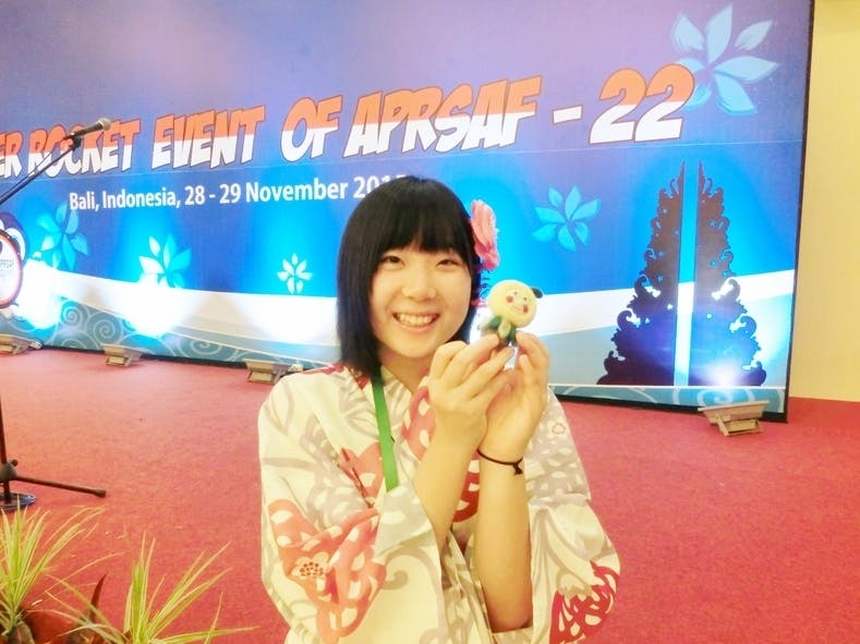 ▲ バリ「水ロケット国際大会」でルビ子を紹介 ▲