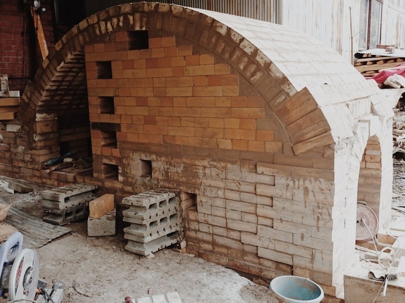 ご自身が使う登り窯はもちろん、ピザ釜の製作や、子供たちとのワークショップなどもしておられて技術と経験豊富で才能豊かな方です。また人柄が素晴らしい!「ピザが3枚も4枚も焼けるような大きな窯がつくりたい」というと「じゃ、燻製もつくれるようにしましょう」と、頼もしい!