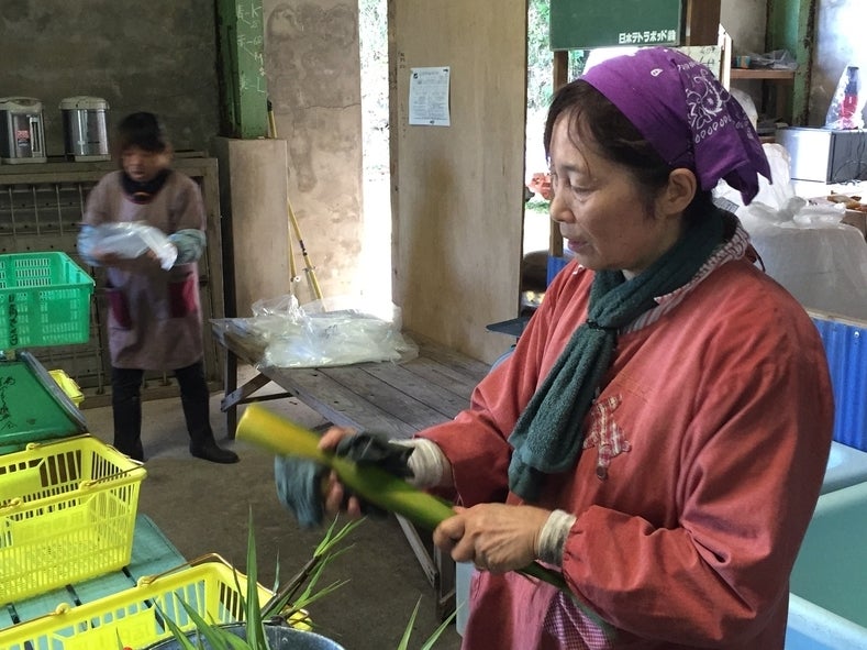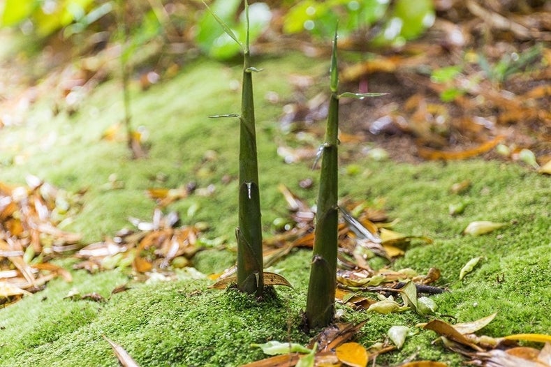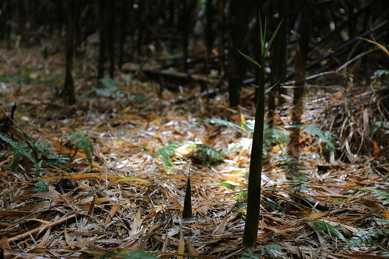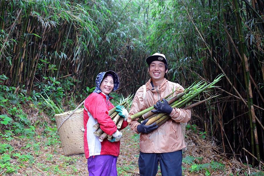 竹に覆われた島で収穫されるタケノコ
