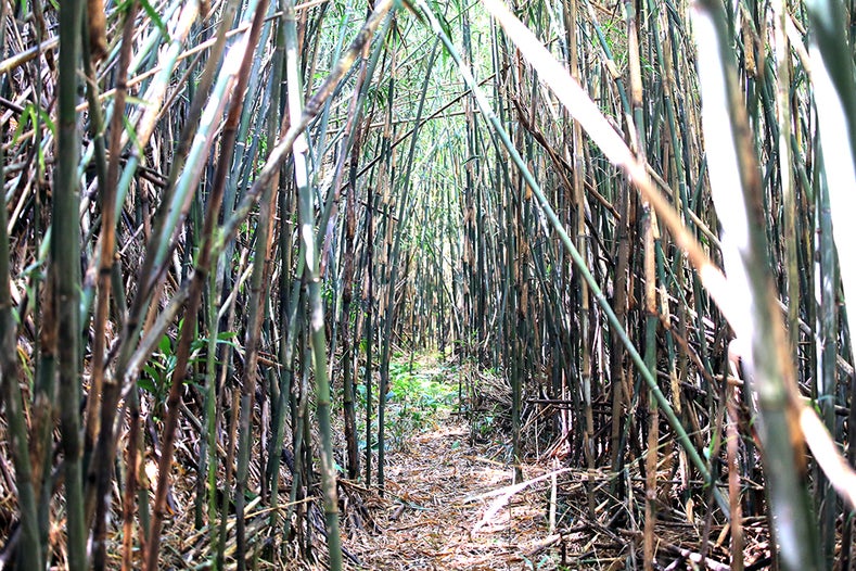 5月6月はタケノコは、島中で見られますが、本当に美味しい良質なタケノコをとるために、このような竹やぶの中を入っていきます。