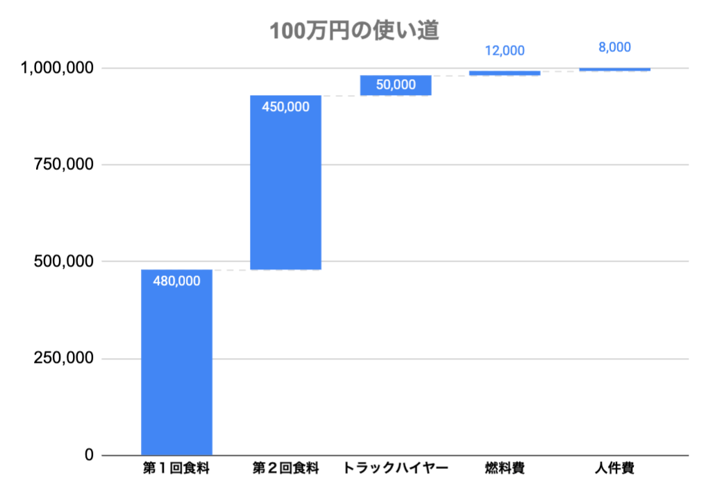 ・第1回食料 940円 × 510家庭 ≒ 480,000円