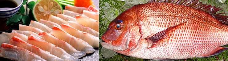 ▼藍より青い天草の海が育てた逸品、「天草さくら鯛」
