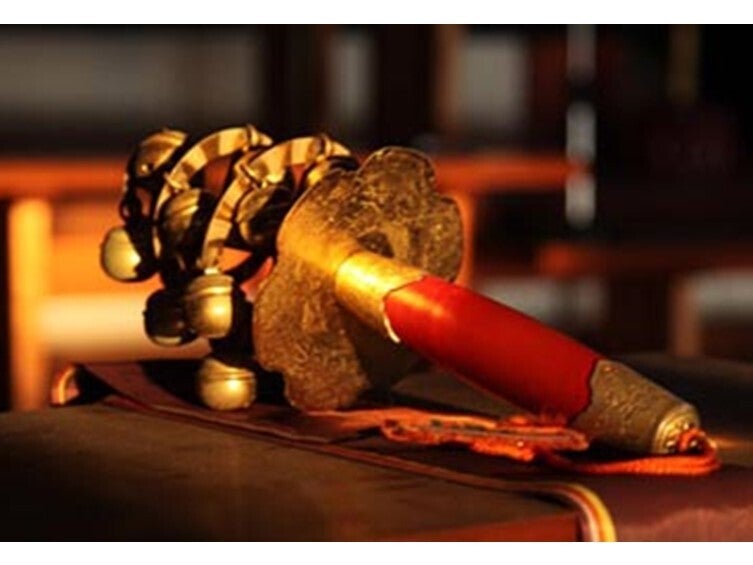 太陽神アマテラスが弟のスサノオの乱行に困り果て、岩の中に隠れてしまい世の中が真っ暗になりました。八百万(よろず)の神様が集まり思案します。