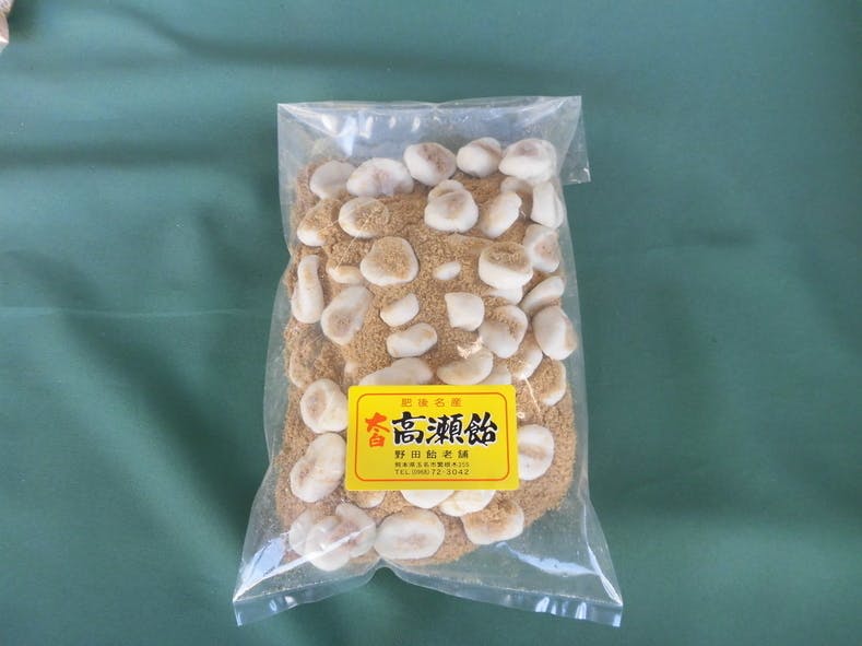 しかし、何としても市飴を販売したいとの想いから地元商工会にご協力頂き、市飴を販売している玉名市の「野田飴老舗」を紹介してもらい、新たに販売できるようになりました。野田飴老舗さんでは、「高瀬飴」という麦芽水飴を原料に製造された飴であり、純白で素朴な甘さが口の中に広がる飴です。ぜひ、ご賞味ください!