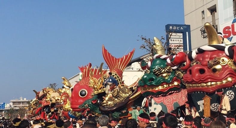 ※獅子、鯛、兜などの豪華絢爛な曳山が14台制作されています。