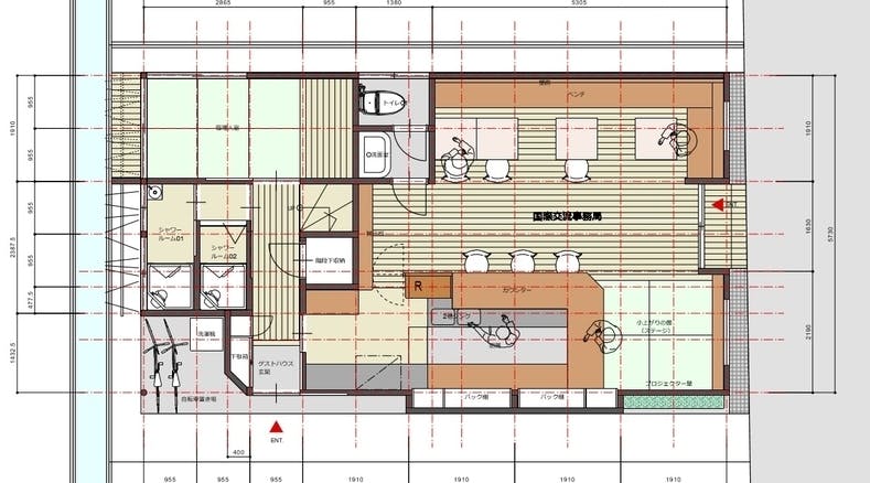 交流スペースはカウンターもあり、夜はお酒なども楽しめる場所です。外国人だけでなく、近所の方々など気軽に出入りができるスペースにします。