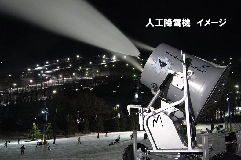 本物の雪を大量に運ぶには限界があるので、人工降雪機も併用しながら雪を降らします。